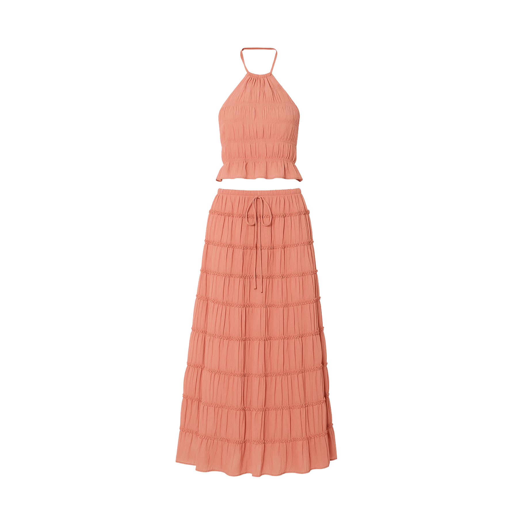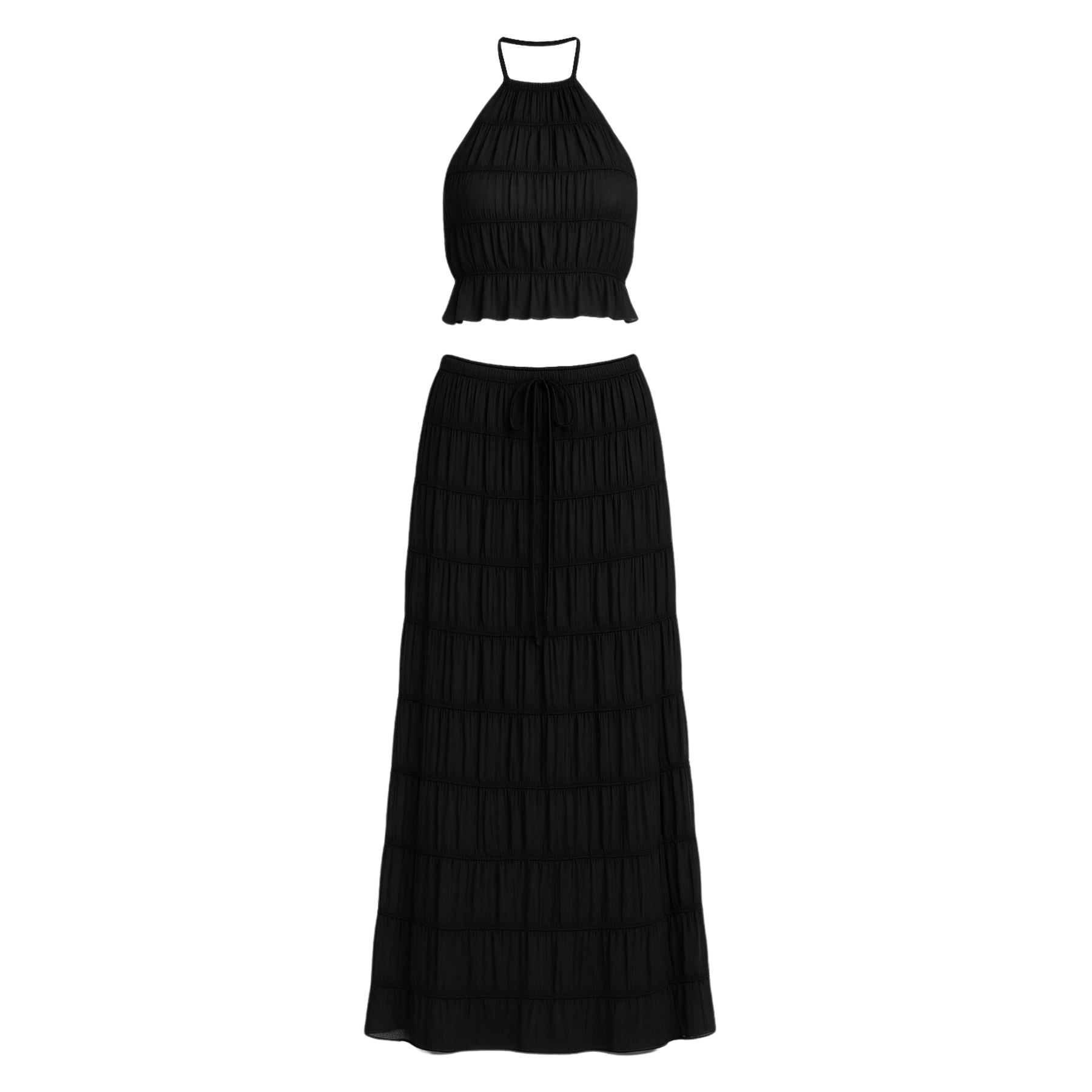 Vi presenterar Elira Stockholm™ | Volangset, en chic tvådelad ensemble i en tidlös beige nyans som är perfekt för semestrar och soliga äventyr. Tillverkad med noggrant fokus på detaljer, har Milana smakfulla volanger som faller graciöst, vilket ger en lekfull touch och flytande rörelse till din look. Trots att tyget har en subtil genomskinlighet, behåller det en inneboende elegans, vilket säkerställer att du utstrålar självförtroende med varje steg.